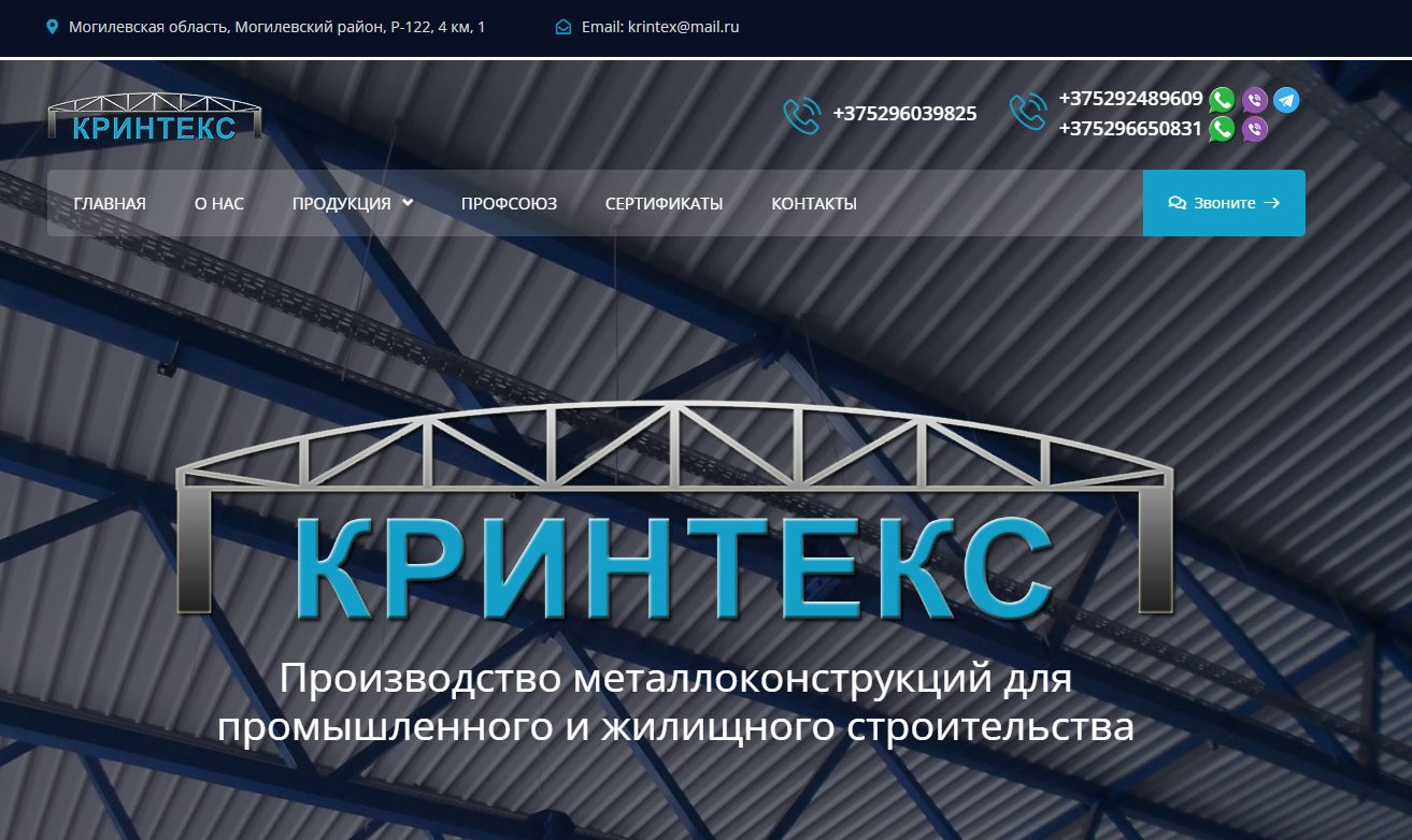 ООО «Кринтекс» занимается производством металлоконструкций.
